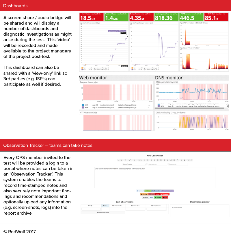 Also local OPS monitoring can be reported on in the tool via the ‘observation tracker’ on the portal. This is strongly recommended as all observations are time-stamped and can easily be correlated to the attack settings during the report/analysis phase.